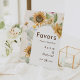 This rustic sunflower beige wedding favours sign design Features sunflowers, wildflowers, and vintage-inspired floral elements on a neutral beige background. This design offers a simple yet captivating aesthetic perfect for your fall or summer celebration. Explore our collection today and infuse your wedding with the timeless allure of rustic sunflower bliss. For personalised coordination or any questions, please don't hesitate to reach out.