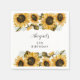 Rustic birthday party paper napkin featuring watercolor illustration of yellow sunflowers with baby's breath.