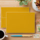 Bright yellow sunflowers, and beautiful blue roses on a pretty yellow envelope.