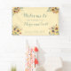 This pretty banner features a rustic sunflower and eucalyptus floral arrangement in each corner. Typography says Welcome to the wedding of (Bride and Grooms names) and the wedding date.