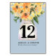 Elements: Lovely portrait of sunflowers in a rustic vase. Your names and details appear in a fun, slightly distressed font. Colours: Yellow, black, brown, orange, green, blue, violet. Themes: rustic, country, barn, romantic, garden, cottage, bright, sunny. Collection: Rustic Sunflower Bouquet Watercolor Wedding Collection. Product Type: Table Card