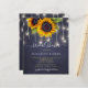Rustic country chic affordable bridal shower party stylish invitation template on a navy chalkboard background with string lights featuring a yellow gold sunflowers bouquet and trendy elegant faux gold calligraphy script.++++++++++++++ Easy to personalise with your details! +++++++++++ The invitation is suitable for summer or autumn fall outdoor garden, farmhouse, backyard rustic country bridal showers, brunch, or luncheon parties. ++++++++++ PLEASE READ THIS BEFORE PURCHASING! This is a budget affordable wedding card printed on a paper sheet (each sheet has one card). ++++ For the best rapport price-quality, our advice is to choose the Semi-Gloss paper type (it is thick enough to be used for stationery) ++++ If you need envelopes, choose the ENVELOPE OPTION. +++ Double-check all the information and spelling of your text because you will receive exactly what you see - no one else will check anything before printing. ++++ This card is designed for size 4.5" x 5.6". In the case you choose another size of the card and text goes outside page, everything needs to be fixed before adding the product to cart. Please ask Live Design Service for help.