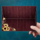 Rustic Sunflower Burgundy Wood Floral Wedding Envelope