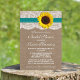 The design features a lovely rustic burlap effect background with a romantic vintage white lace effect trim finished with a stunning sunflower and teal ribbon.