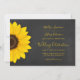 This cheerful sunflower chalkboard style wedding invitation features a chalk-drawn sunflower with bright, colorful petals in shades of gold at the left border on the front of the invitation - the back of the card is a customizable solid color, currently dark gray - by katz_d_zynes