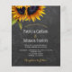 Elegant rustic summer or autumn fall wedding stylish budget affordable invitation template on dark grey charcoal chalkboard featuring a beautiful sunflowers bouquet. +++++++++ Easy to personalise with your details. ++++++++++++++ The invitation is suitable for elegant rustic country farmhouse or barn outdoor weddings. ++++++++++ PLEASE READ THIS BEFORE PURCHASING! This is a budget affordable wedding card printed on a paper sheet (each sheet has one card). ++++ For the best rapport price-quality, our advice is to choose the Semi-Gloss paper type (it is thick enough to be used for stationery) ++++ If you need envelopes, choose the ENVELOPE OPTION. +++ Double-check all the information and spelling of your text because you will receive exactly what you see - no one else will check anything before printing. ++++ This card is designed for size 4.5" x 5.6". In the case you choose another size of the card and text goes outside page, everything needs to be fixed before adding the product to cart. Please ask Live Design Service for help.