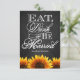 Rustic Sunflower Country Wedding RSVP Cards -match the invitations and more found below on this page. Compliment your sunflower wedding theme with these RSVP cards that feature a black chalkboard as a background with "Eat, Drink & Be Married" in fun & elegant script with vibrant sunflowers at the bottom of the front and back of each card.