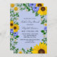 Rustic country mother's day invitation featuring vibrant sunflowers, traditional white daisies and light blue flowers against a light blue background with baby's breath and botanical greenery accents