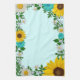 Rustic Sunflower Daisy Teal Floral Tea Towel