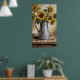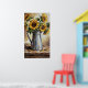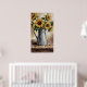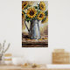 Elevate your space with this captivating rustic sunflower decor wall art poster. This expressionist painting features vibrant sunflowers in a charming, galvanized pitcher on a worn wooden table, rendered with visible brushstrokes and warm earth tones. It's the perfect piece to add a cozy, vintage farmhouse aesthetic and artistic flair to your living room, kitchen, or any cherished space.