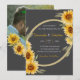 Celebrate your special day with this rustic sunflower wedding invitation, featuring vibrant yellow sunflowers, a modern dark grey background, and elegant typography. Perfect for fall, summer, or rustic barn weddings, this invitation set is fully customisable, allowing you to edit the couple's names, wedding details, and date. The back design includes an option to add a romantic engagement photo, making it a personalised keepsake. Ideal for country, boho, farmhouse, or sunflower-themed weddings.