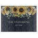 Add rustic charm to your kitchen with this elegant sunflower and eucalyptus cutting board. Customise with your family name and monogram. Suitable for nature lovers!