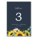Rustic Sunflower Eucalyptus | Navy Table Number