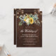 Rustic sunflower eucalyptus string lights wedding invitation