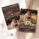 Express your thanks with this rustic sunflower eucalyptus wood wedding thank you card. The design features beautiful watercolor yellow sunflowers and eucalyptus with string lights on a rustic barn wood background. Personalise with two photos, your names and personal message.