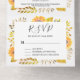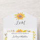 This unique wedding invitation is decorated with watercolor sunflowers and foliage in fall shades of rust and gold.