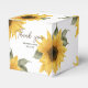 This sunflower wedding favour box embodies the essence of rustic charm, perfect for summer or fall nuptials. Adorned with a delightful sunflower design, it captures the warmth and joy of your special day. The box is elegantly crafted to include the bride's and groom's initials, adding a personalised and intimate touch to each favour. Its design harmonises beautifully with rustic sunflower-themed wedding stationery, ensuring a cohesive look throughout your event. Ideal for presenting small gifts or treats to your guests, this favour box is not only a memorable keepsake but also a reflection of your love and appreciation.