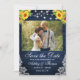 Rustic Sunflower Floral Blue Wood Lights Photo Save The Date