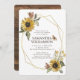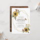 Composed of cursive script and serif typography; All against a backdrop of wooden background at the back of the card and happy sunflower flowers.