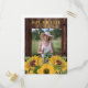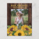 Rustic dark brown wood graduation Save the Date/Announcement postcard with colourful yellow sunflowers and space for your photo. Contact us for help with customisation or to request matching products.