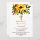 Rustic Sunflower Greenery Gold Cross Baptism Invitation