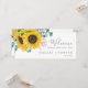 This rustic sunflower hanging seating chart welcome header is perfect for a country wedding. The bohemian floral design features yellow sunflowers, blush pink flowers and hunter green eucalyptus greenery in watercolor with an elegant modern boho feel. The card prints on the front and back (double-sided). Please check the collection for the coordinating table number seating chart cards.