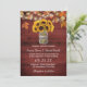 Rustic Autumn Sunflower Jar String Lights Red Barn Wedding Invitations.