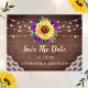These save the date cards feature rustic sunflower and purple rose watercolor floral design with lace, string lights and wood background. They are part of a collection which includes a full range of matching wedding invitations and stationery. Please visit our store to see the full range of items that you can personalise for your wedding.