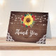 Rustic Sunflower Lace Wood Red Floral Wedding Thank You Card