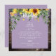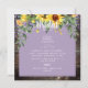 Rustic Bridal Shower Invitation. Sunflowers with Lavender and wood background. Square. Lavender back.