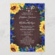 Rustic Sunflower Lights Blue Floral Border Wedding Programme