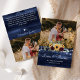 Express your thanks with this rustic sunflower navy blue wood wedding thank you card. The design features beautiful watercolor yellow sunflowers and burgundy red roses with string lights on a rustic barn wood background. Personalise with two photos, your names and personal message.