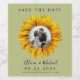 Personalised unique wedding save the date wine labels featuring a yellow gold sunflower with your photo inside, the bride and groom's names, date, and website over a sage green background. ++++++++++ Suitable for rustic country modern summer or autumn fall outdoor backyard, garden, barn or farmhouse weddings. ++++++ Please note that the colours are changeable. If you need to customise it in a specific colour, please contact the designer through the MESSAGE button below.