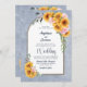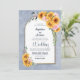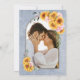 Invite your friends and loved ones to your wedding with this rustic blue floral arch invitation featuring vibrant sunflowers, delicate pink roses, and sprays of eucalyptus branches to help share your joy on your special day. Include your favourite image of you and your special someone on the reverse side of the invitation.