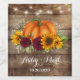 Rustic Sunflower, Pumpkin & Roses Wine Label. A great wedding favour for all your guests. Featuring a rustic wood plank background with pumpkins, sunflowers and burgundy roses and yellow sunflowers. Text is customisable for your event.