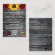 Searching for sunflower wedding enclosure card ideas to go with your personalised invitations? Create your own elegant qr code enclosure cards with a rustic country feel using an elegant DIY template that is simple to add custom details to. Include a party or wedding website url into the template field to create a QR code that your guests can easily scan with their mobile phones. The original, unique floral art by Raphaela Wilson showcases golden yellow sunflowers and red roses atop a vintage old barn wood texture. The soft glow of string lights on the petals adds a warm romantic touch, perfect for autumn. Should you edit this rustic design further, alternate wood colours are available to add to your card, such as navy blue, warm brown, teal green, and antique ivory white. These red rose and sunflower details enclosure cards can complement stationery for fall weddings, a country quinceañera, sweet 16 birthday party, floral baby shower, summer bridal shower, or another special day that these beautiful flowers bring joy to. Category: wood details wedding enclosure cards with sunflowers; qr code wedding enclosure cards; and sunflower wedding reception cards. Rustic sunflower wedding colour theme: yellow gold, dark red, burgundy, dark grey, light grey, black and white.