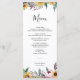 Rustic Sunflower Rose Burgundy Fall Wedding Food Menu features a beautiful watercolor with burgundy roses, sunflowers, wildflowers, and greenery. Perfect for an Autumn Fall Country Wedding. This Wedding Ceremony Program is beautiful for a country wedding or a garden wedding