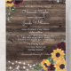 Bring warmth, charm, and effortless functionality to your wedding stationery with this rustic all-in-one wedding invitation featuring sunflowers and burgundy roses. Designed with a rich woodgrain background and soft string light accents, this invitation captures the cozy, romantic feel of a countryside celebration while keeping everything beautifully organized in one piece.