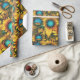 Wrap gifts or decoupage with this nostalgic, rustic country yellow sunflowers, in a seamless pattern with unique teal blue centres with a leafy, green base. Perfect for weddings too.