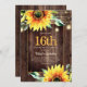 Rustic wood, yellow sunflowers with greenery, and sparkling string lights and lanterns 16th country-style birthday party invitation for teen girls. Contact us for help with customisation or to request matching products.