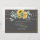 The simple, elegant nature of this save the date is perfect for your special day. This design features a charcoal grey background, sunflowers, string lights, and custom typography.