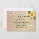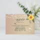 Invite your guests to respond in style with our elegant, country-inspired RSVP card. Featuring a blend of rustic burgundy and rose gold, this modern design is adorned with string lights, sunflowers, and gilded gold floral lace. Simple calligraphy script adds a touch of sophistication, perfect for your botanical and boho wedding.