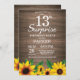 Rustic Sunflower Surprise 13th Birthday Invitation