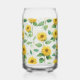 Sip in style with this cheerful sunflower watercolor floral can glass. Featuring elegant botanical details in green and yellow, this chic, cute glass blends modern, vintage boho, farmhouse, and cottagecore style for spring and summer.