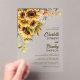 This rustic sunflower acrylic wedding invitation design encapsulates the natural beauty of sunflowers, creating a delightful ambiance for your special day. Completely customisable, this invitation allows you to personalise every detail, from the bride and groom's names to the date and time of your wedding and the venue location.