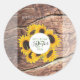 This design features rustic sunflowers on a wood backdrop. The sunflower wreath elegantly frames the wedding date. The yellow, green and brown colour tones create a rustic natural country garden feel. The opaque border highlights the sunflower centerpiece. Elegant wedding sticker design with modern elements. Matching wedding invitations and other stationery items are also available.