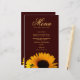 This floral rustic wedding menu card, with a sunflower photo is perfect for any autumn events like weddings, bridal or baby showers. Additional text is printed on back to accommodate your needs.