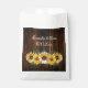 Brighten your special day with this charming Rustic Sunflower Wedding Favour Bag, perfect for a summer wedding or sunflower wedding themes. Featuring vibrant watercolor sunflowers and delicate summer florals, the design is set against a rich natural wood stain background for a warm, country-inspired touch. The bride and groom’s names are elegantly highlighted in graceful script, making this a lovely keepsake for your guests. Ideal for a rustic floral or natural outdoor celebration, this favour adds both beauty and a personal touch to your wedding. Whether you're offering sweets, small treats, or tokens of appreciation, this piece makes a stunning part of your wedding favour supply.