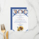 A rustic and lovely wedding menu sure to help entice your guests to enjoy your upcoming wedding reception with a blue and white background, sunflowers and easy text to update with your personal menu options.