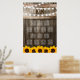 SUNFLOWER WEDDING SEATING TABLE PLAN | Country barn oak barrel background, twinkle string lights, golden sunflowers and your monogram.